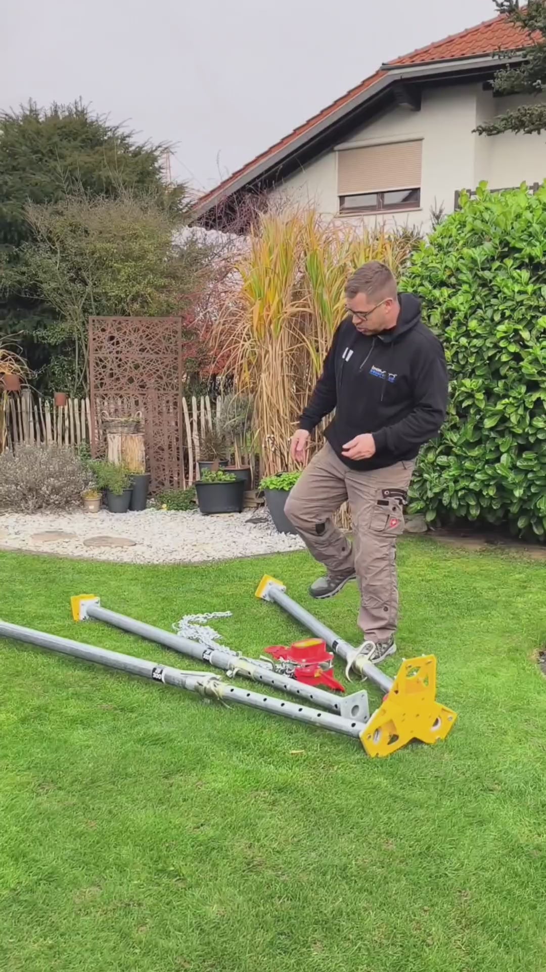 Von einer Person. Ohne Stress. Kein schweres Schleppen, kein komplizierter Aufbau, kein Spezialwerkzeug. Das handliche System (nur 15 kg) ist in wenigen Minuten von einer einzigen Person einsatzbereit. Das spart Zeit, Kraft und Nerven bei jedem Einsatz.