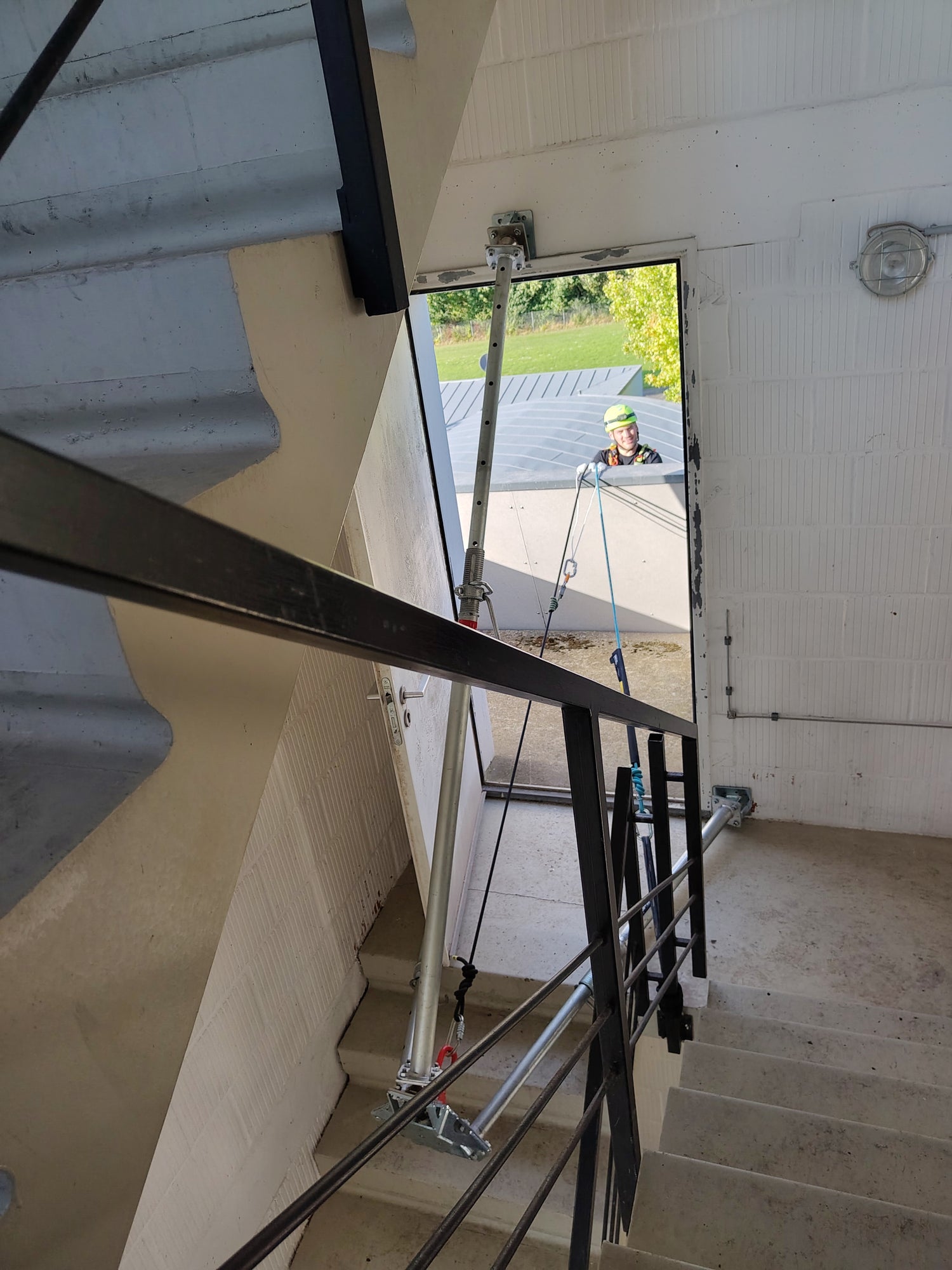 Personenkapazität: Zugelassen für bis zu 3 Personen gleichzeitig (PSA gegen Absturz nach EN 795:2012 Typ B, geprüft für Mehrbenutzer nach CEN/TS 16415:2017). Dies ermöglicht die gleichzeitige Sicherung mehrerer Retter oder zusätzlicher Redundanzsicherungen.