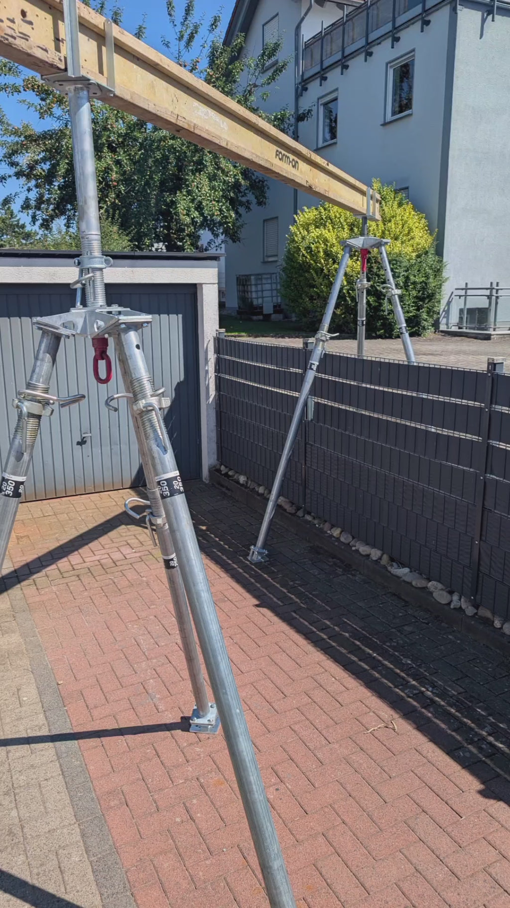 Gewicht und Transport: Das System (Kopfplatte und drei Fußelemente) wiegt ca. 15 kg. Hinzu kommt das Gewicht der drei Baustützen, das je nach Material (Stahl oder Alu) und Länge variiert. Alle Komponenten sind kompakt lager- und transportierbar.