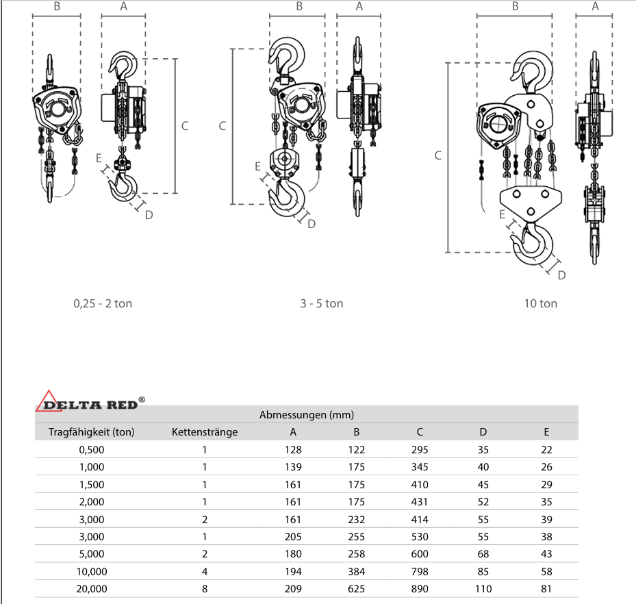 DELTA RED Premium 3t Stirnradkettenzug mit 3m Hubhöhe
